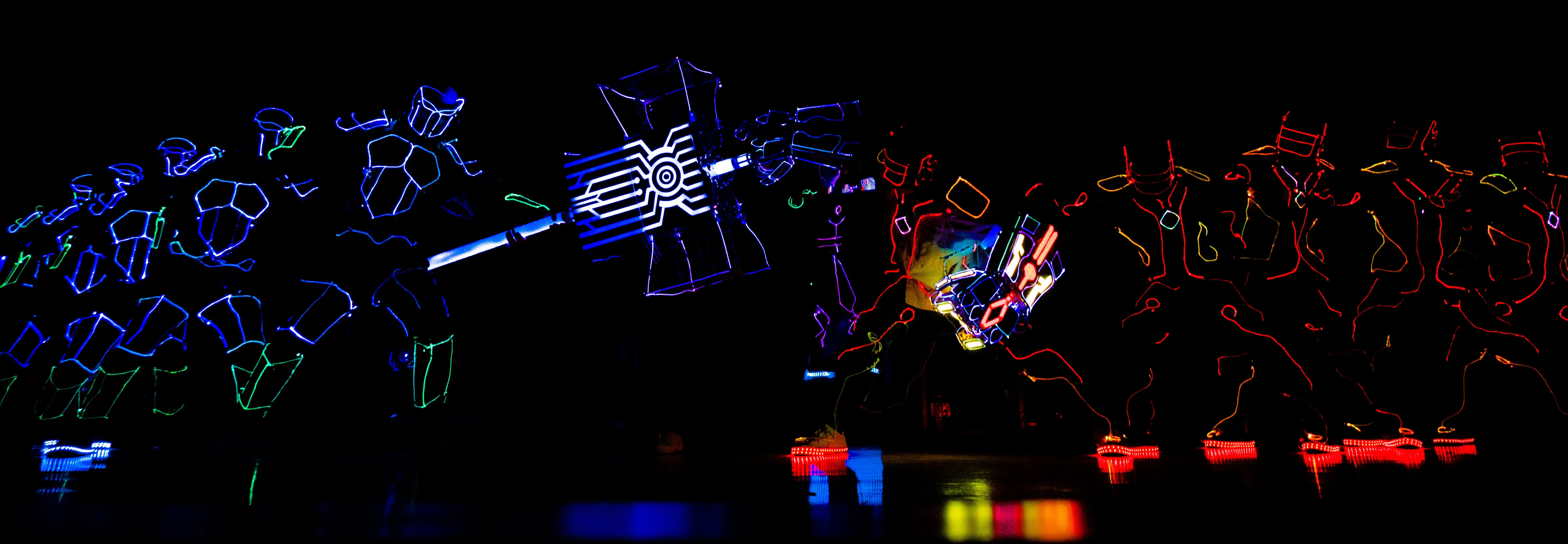 Every year, during NTUEE night, the “Light Dance” event dazzles with tailor-made costumes featuring programmable lights and epic game-like items. Over 50 dedicated individuals spend a year designing the hardware, software, costumes, and choreography for this mesmerizing performance, bringing people’s fantasies to life through awe-inspiring movements and captivating dances that shine in the dark.